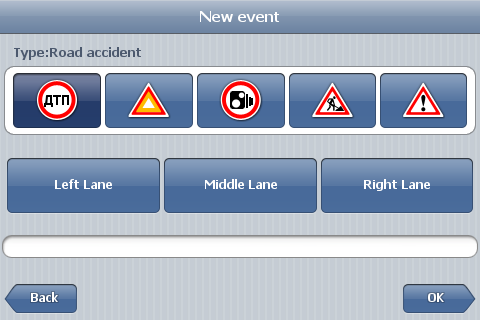 This service allows users to mark and see on the navigation device map other users’ marks of the following types of road events: road accidents (with lanes segmentation), car crashes, road works (with lanes segmentation), other warnings, and also to mark at the map detected speed cameras.