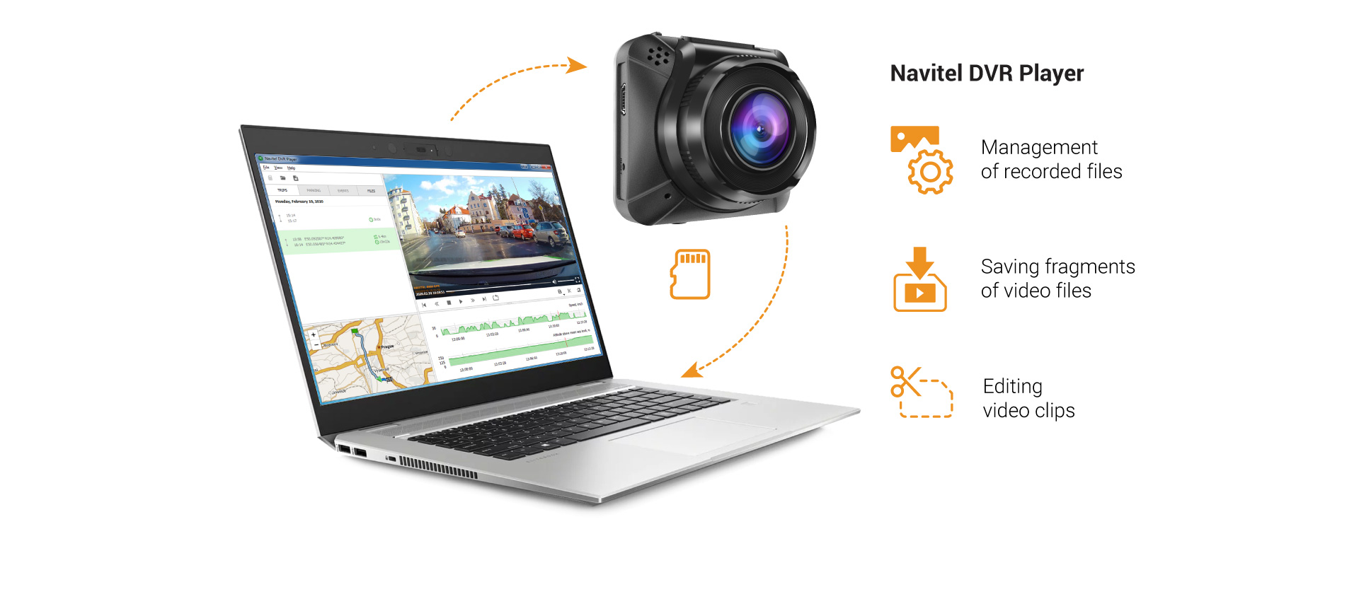 NAVITEL NR200 NV records in Full HD at 30 fps and uses one of the best video compression formats H.264. All videos are recorded in a loop mode on a microSD card up to 64 GB.