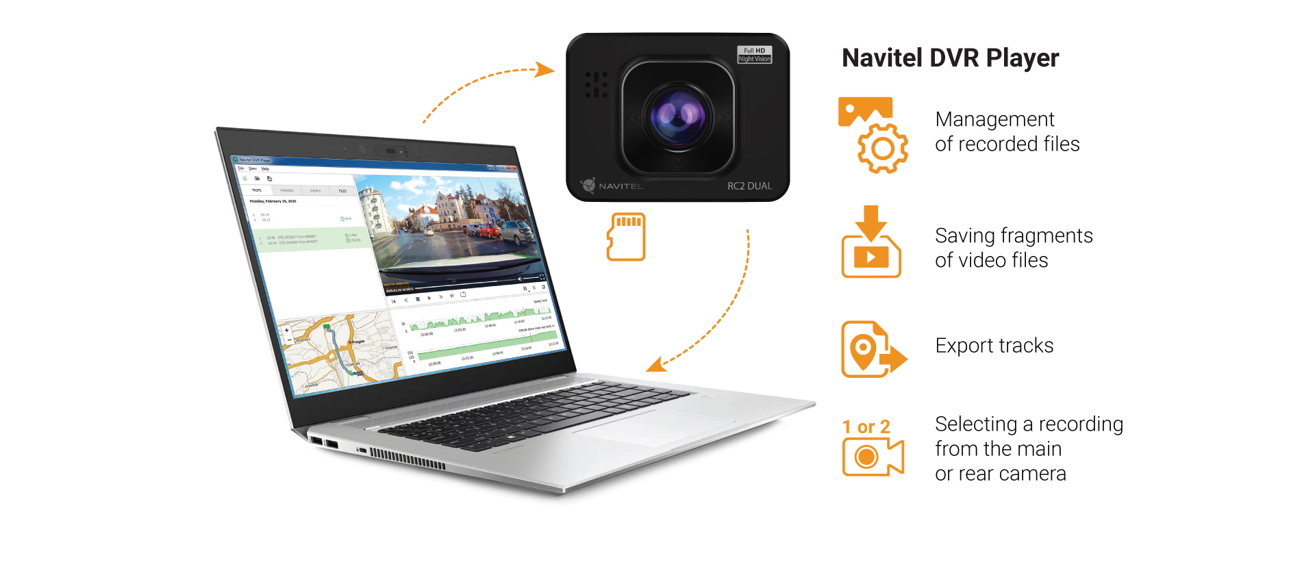 NAVITEL RC2 DUAL is a new modern Full HD compact dashcam with a built in screen, 1080p resolution and additional 720p rear view camera.